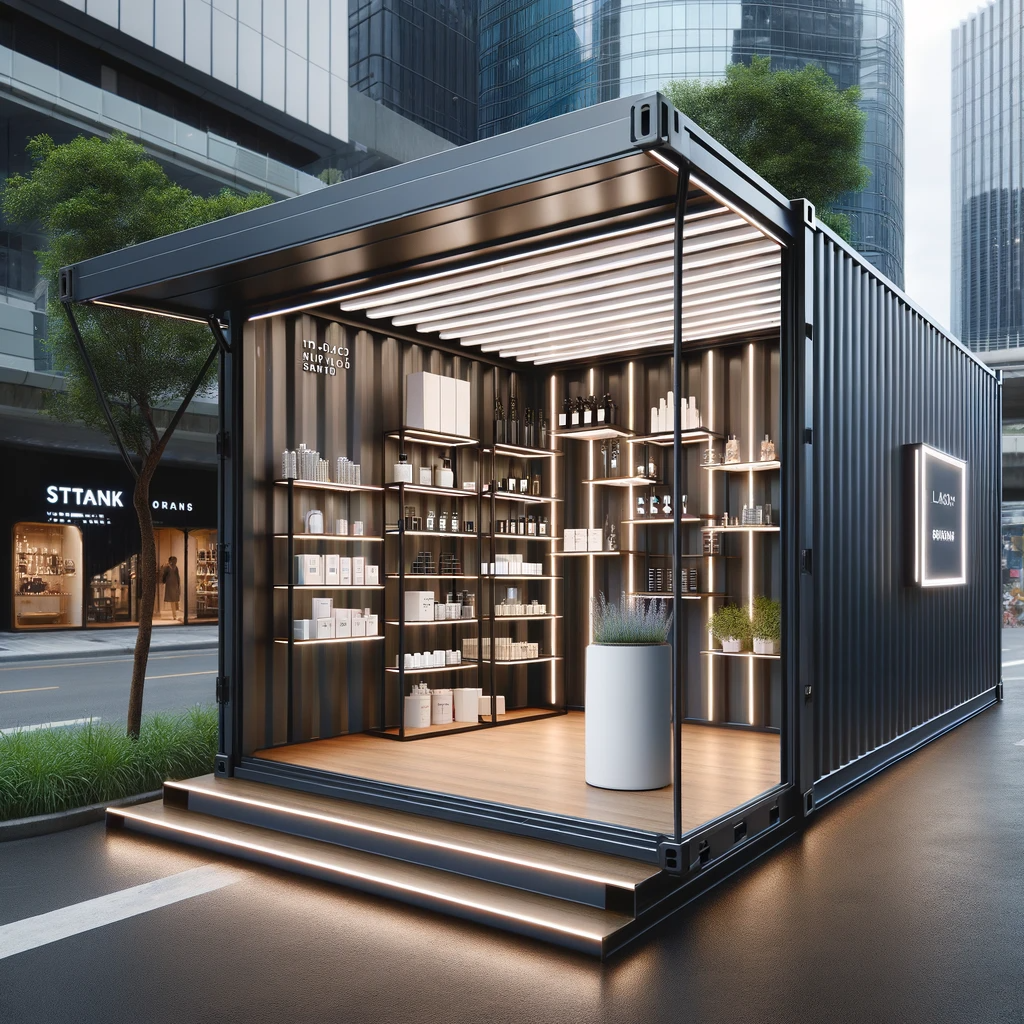Shipping containers can be converted into stylish and mobile retail spaces, perfect for pop-up shops. Their open-front design, complete with display shelves and branding signage, makes them ideal for urban settings and outdoor events.