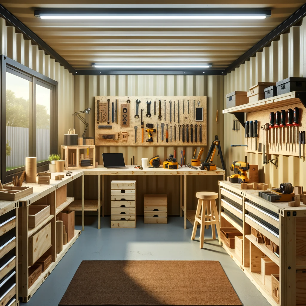 Ideal for DIY projects or carpentry, containers can serve as functional workshop spaces. They can be equipped with workbenches, tools, and storage solutions, providing a well-lit area for creative work.